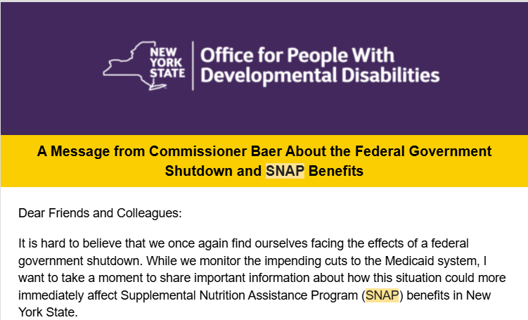 As I travel around the state, meeting with self-advocates, family members of people with disabilities, and our not-for-profit providers, I am overwhelmed by the fear and uncertainty you are experiencing about the federal cuts to Medicaid and other vital services and the impact it will have on your lives and on your businesses. I share your deep concern over the recently signed “Big Beautiful Bill,” which will decimate New York State’s safety-net healthcare system and is project to result in 1.5 million New Yorkers losing their health insurance coverage and 300,000 losing their SNAP benefits.