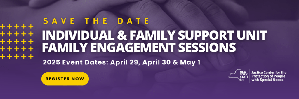 | The Justice Center for the Protection of People With Special Needs (Justice Center) will be hosting the NYS Justice Center 2025 Summit in March and April 2025. The event features several individual sessions covering policy updates, trends, and prevention materials. In addition, in-depth sessions on a variety of Justice Center programs will be available. The event is targeted for provider agencies under the jurisdiction of the Justice Center, individuals receiving services, families, peer advocates and other interested stakeholders. |