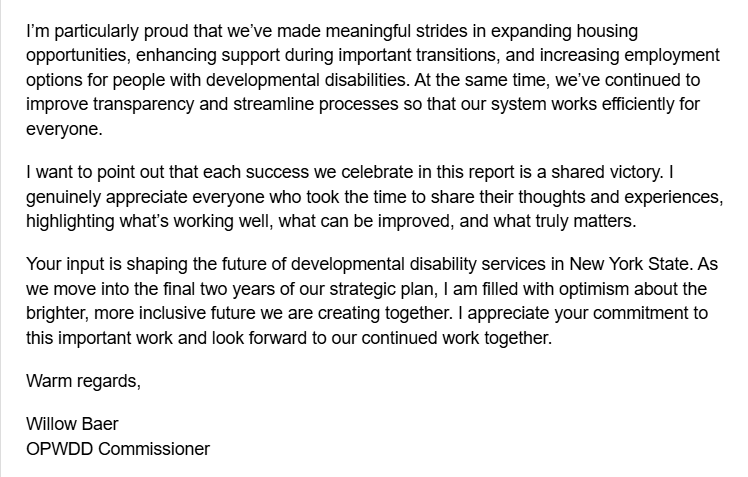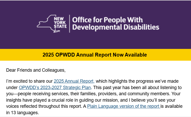 As I travel around the state, meeting with self-advocates, family members of people with disabilities, and our not-for-profit providers, I am overwhelmed by the fear and uncertainty you are experiencing about the federal cuts to Medicaid and other vital services and the impact it will have on your lives and on your businesses. I share your deep concern over the recently signed “Big Beautiful Bill,” which will decimate New York State’s safety-net healthcare system and is project to result in 1.5 million New Yorkers losing their health insurance coverage and 300,000 losing their SNAP benefits.